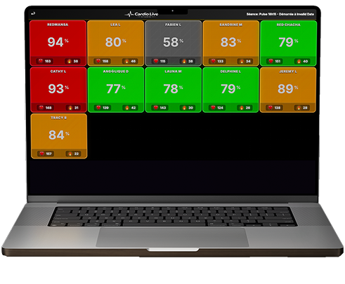 CardioLive Studio peut être utilisé pour des séances de préparation physique, des entraînements collectifs en salle, du travail en groupe avec suivi d’intensité et la visualisation des zones cardio pendant l’effort.