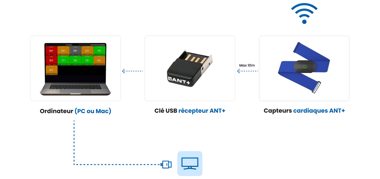 – une ou plusieurs clés USB récepteur ANT+ suivant le nombre de participants